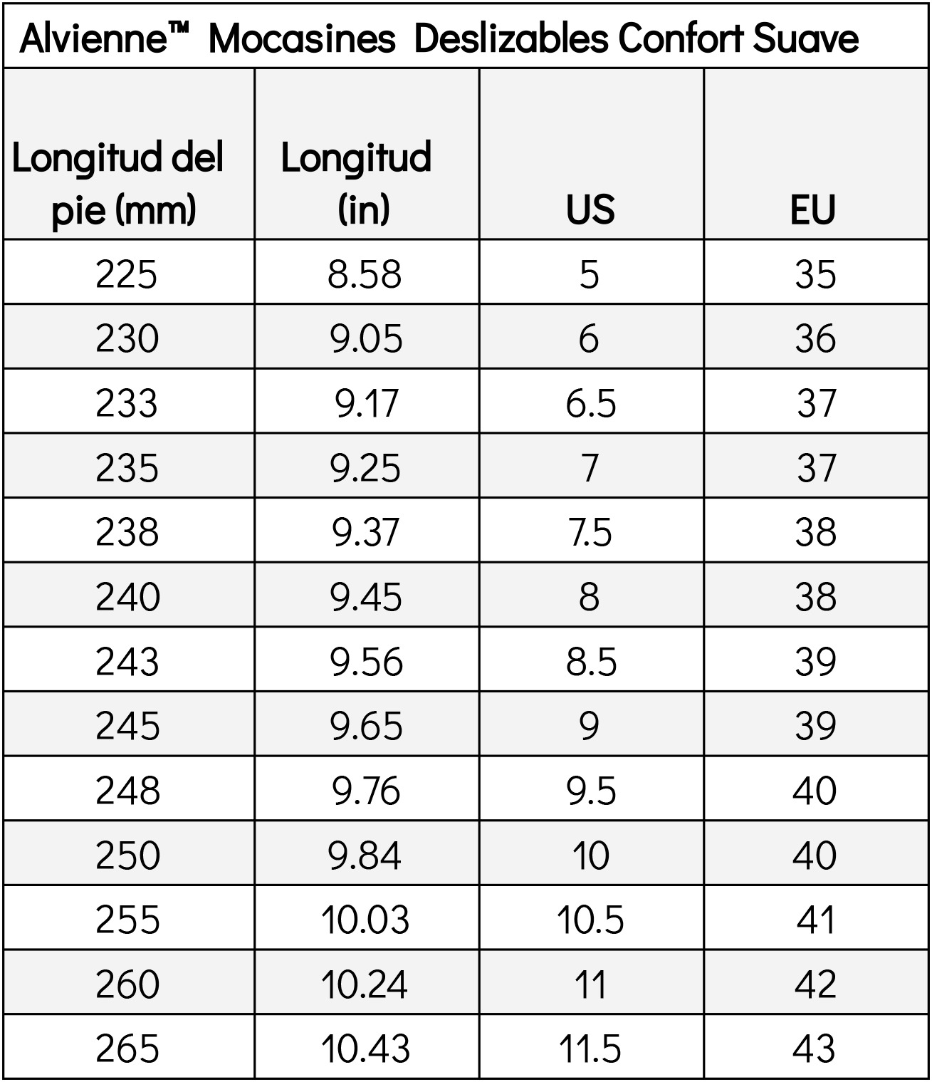 | Longitud del pie (mm) |